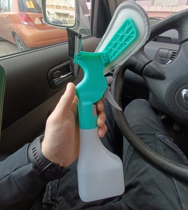 - 4 в 1 функціональність– поєднання насадки з мікрофібри, щітки, скребка та розпилювача.