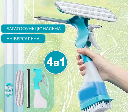 Універсальна щітка 4 в 1 допоможе вам швидко та ефективно очистити будь-яку скляну поверхню без зайвих зусиль.